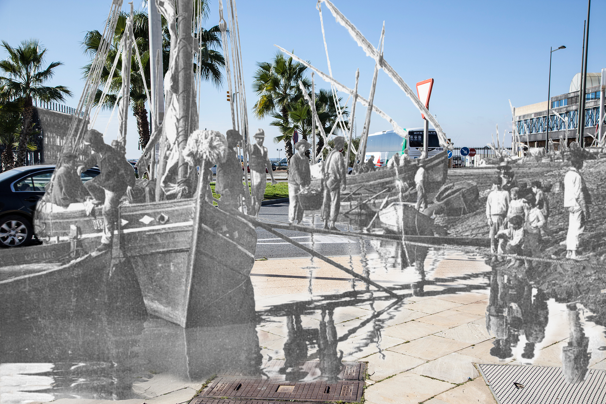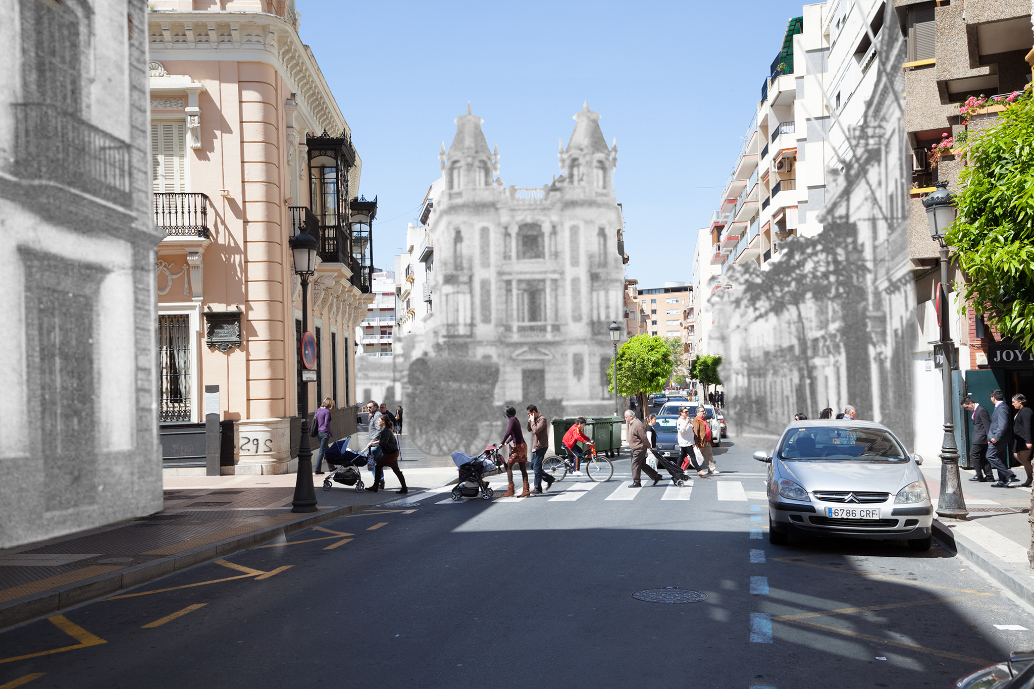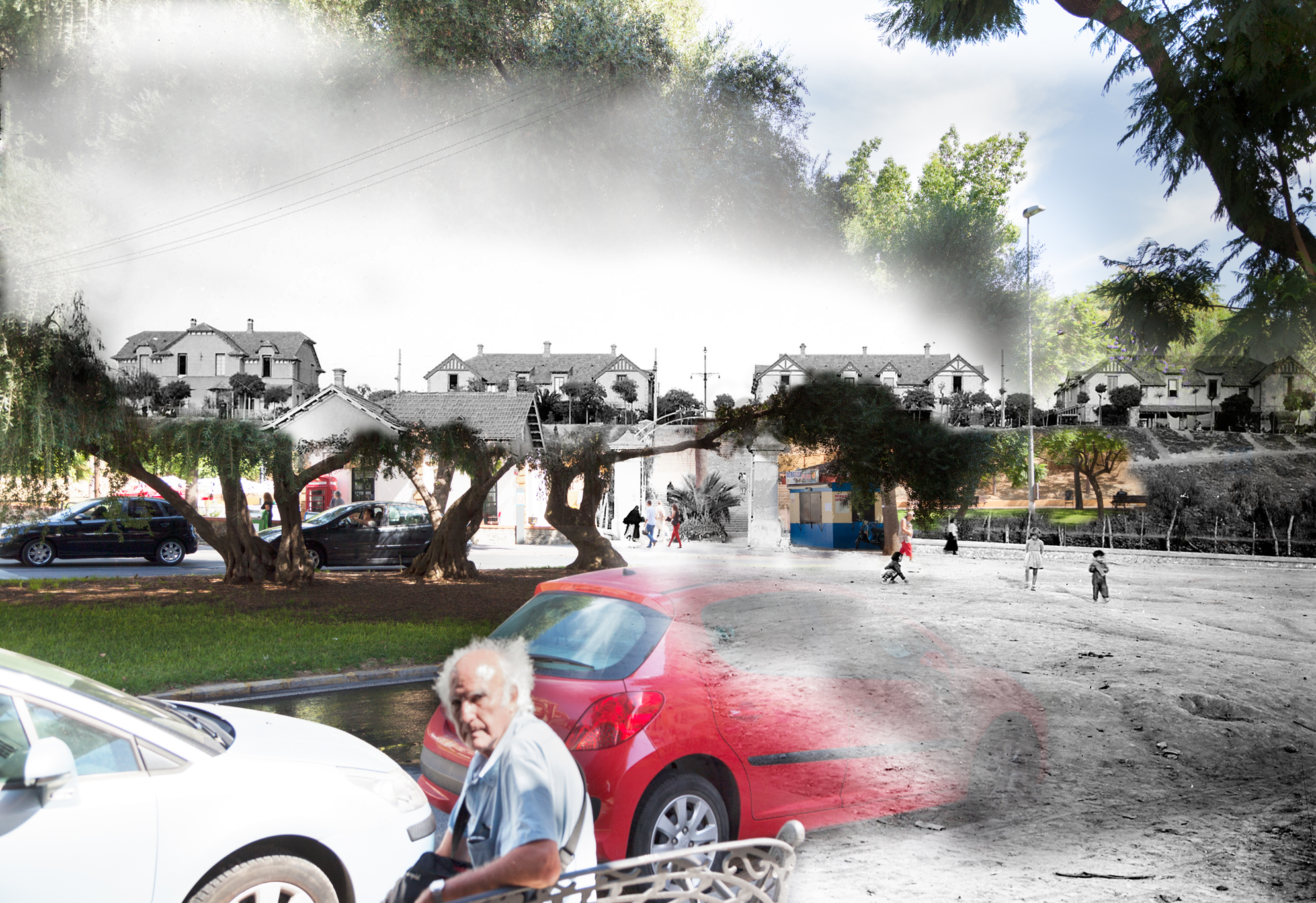 A este fin, he usado fotografías históricas, en blanco y negro, de esas ciudades tal como yo las recordaba, las cuales he fundido con otras que he realizado en color tratando de reproducir el escenario de las primeras. En las fotografías, se mezclan color y blanco y negro como una manera de simbolizar el presente y el pasado, a los que se quiere hacer convivir en el único espacio de esa imagen, es decir, tal como se producía esa fusión en mi mente. He procurado que los lugares fotografiados sean elementos identitarios tanto para mí como en el imaginario colectivo de mis conciudadanos; no siempre fue posible, por ejemplo, porque el lugar desde el que se tomó la fotografía ha sido ocupado por un nuevo edificio o por cualquier otra razón.
